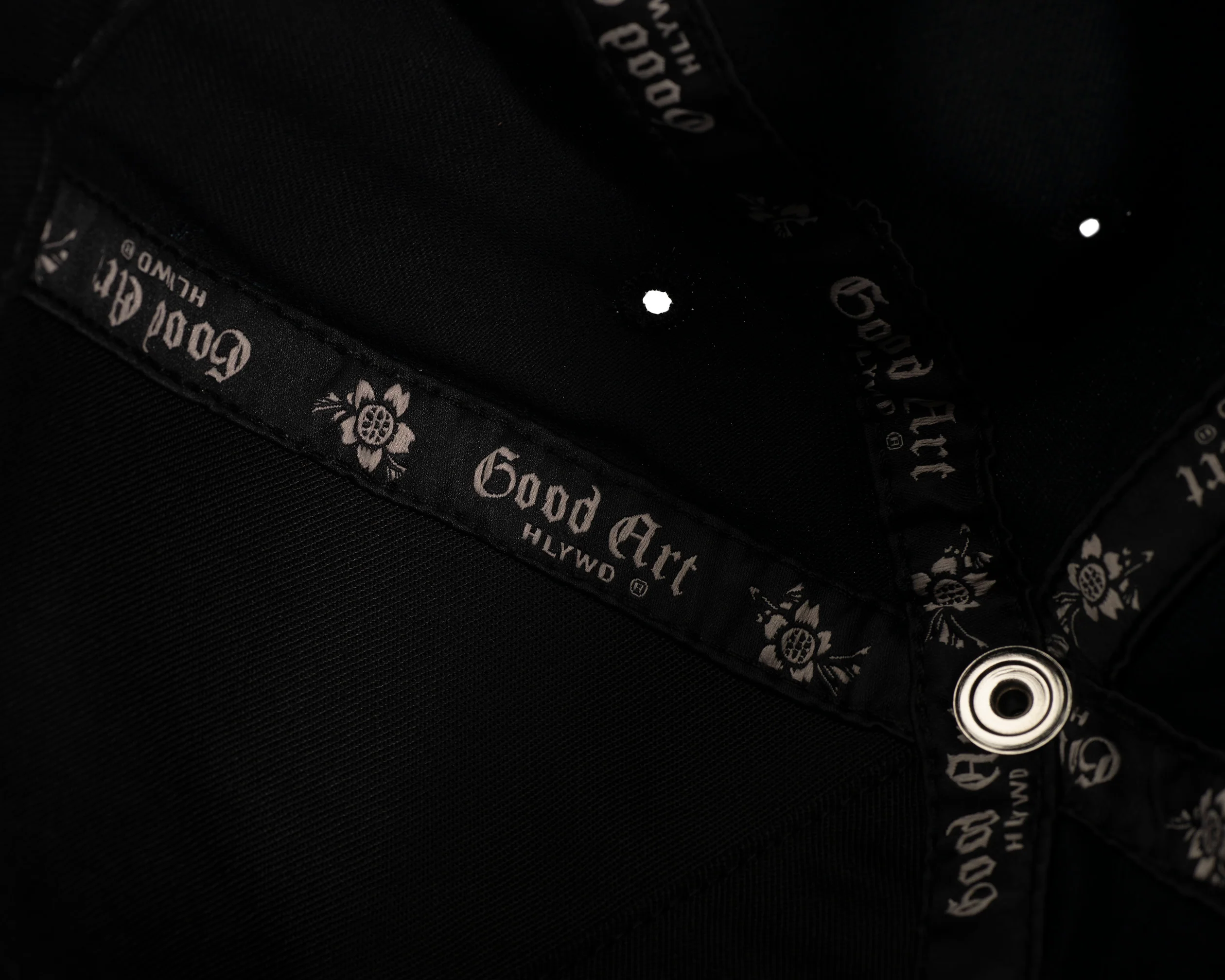 Tonal Trunk logo embroidery on cotton twill. Featuring our removable sterling silver Rosette snap on top. When you trash the the cap or need to tinker, forcefully pop the SnapCap off the top (it goes back also) and snap it somewhere else, like your leather jacket. Enjoy.