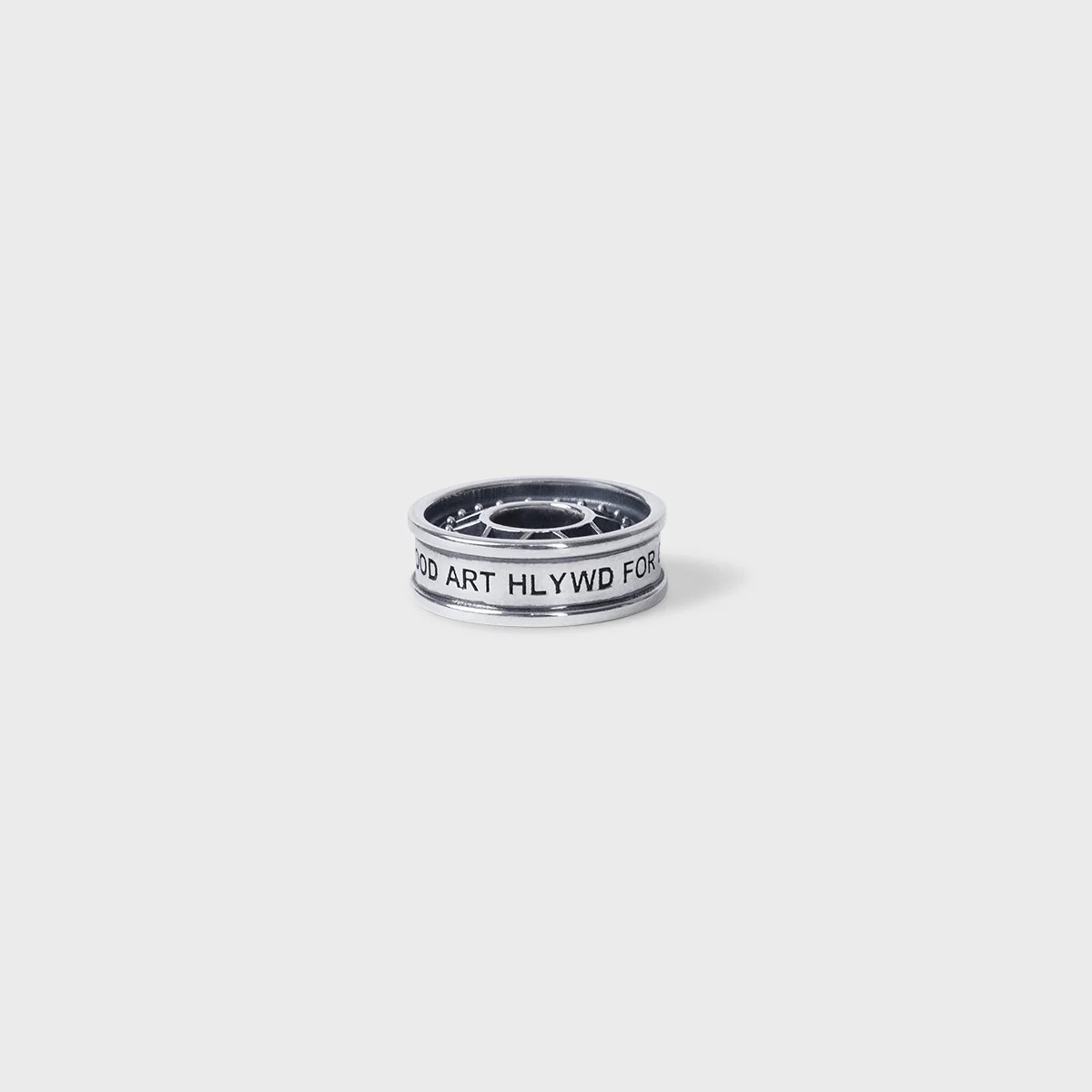 925 sterling silver roundel charm inspired by an automobile wheel rim. 9/16" in diameter, 3/16" in depth. Can be worn on the Ball Chain Necklace (both regular size & mini) or bracelet.