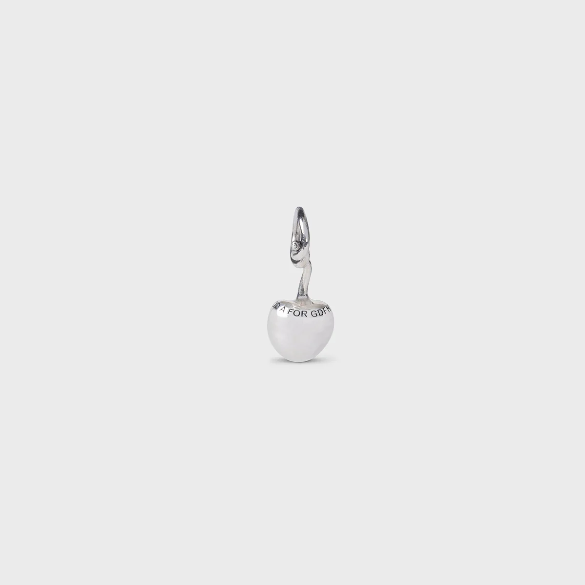 925 sterling silver cherry charm with a knotted stem which acts as a bale. 7/8" in length, 5/16" in diameter. Can be worn on the 925 Hoop Earrings, Ball Chain Necklace (both regular size & mini) or bracelet.